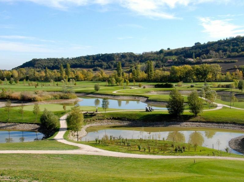Nelle foto: i percorsi del Golf Cerreto di Miglianico, del Conero Golf Club e del Golf Club Le Fonti