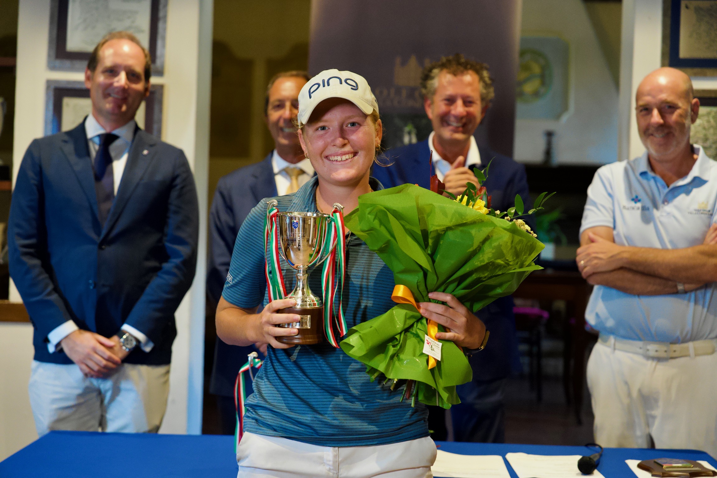 Non è entrata nel playoff per un solo colpo Gemma Simeoni (Madonna di Campiglio), quarta con 210 (-3) insieme alla norvegese Ella Ingebretsen, al vertice nel secondo round. Al sesto posto con 211 (-2) la transalpina Axelle Guillemard, al settimo con 212 (-1) Giulietta Bertero (Torino), Guia Vittoria Acutis (Castelconturbia) e la svizzera Martin Axelle, all’11° con 214 (+1) Laetitia Bona Fedeli (Villa Condulmer) e al 15° con 216 (+3) Ginevra Tassoni Teg (Ambrosiano).