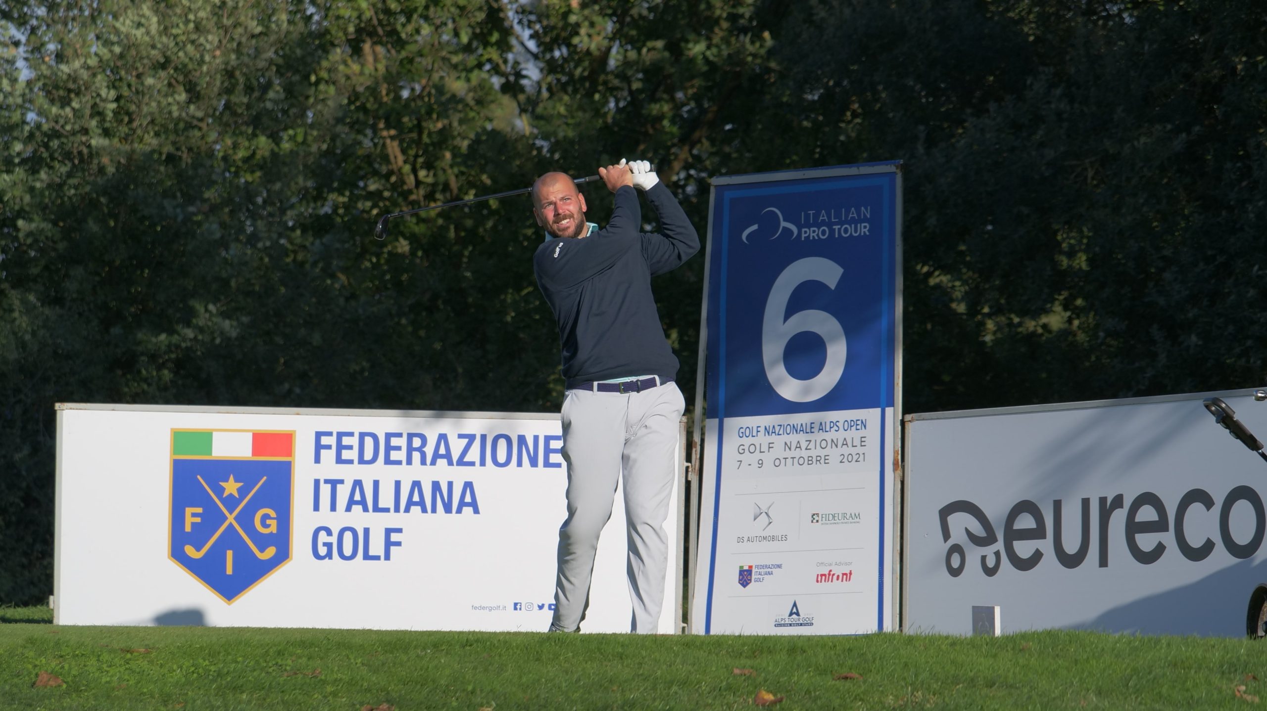 Il Golf Nazionale Alps Open, penultimo appuntamento dell’Italian Pro Tour 2021 – il circuito di gare nazionali e internazionali della FIG, arrivato quest’anno alla 15esima edizione – e dell’Alps Tour, il terzo circuito europeo, sale di colpi. Sul percorso del Golf Nazionale (par 72), a Sutri (Viterbo), al termine del secondo giro Mathias Eggenberger resta da solo al comando con 136 (68 68, -8) colpi. Lo svizzero, già in testa dopo il primo round insieme ad altri tre concorrenti tra cui Nicola Maestroni, è riuscito a dare continuità al suo gioco e ha fatto registrare ancora una volta un parziale di 68 (-4), staccando così gli avversari. Con le ultime 18 buche da giocare, l’elvetico ha quattro colpi di vantaggio su un quintetto di inseguitori. In seconda posizione ci sono, infatti, con 140 (-4) gli azzurri Alessandro Tadini, Jacopo Vecchi Fossa, Nicola Maestroni, oltre che l’amateur francese Julien Sale e l’irlandese David Carey. Presenti in Top 10 altri due italiani: Carlo Casalegno e Stefano Pitoni, rispettivamente settimo con 141 (-3) e nono con 142 (-2). Una curiosità, tra i primi dieci del leaderboard ci sono tre dilettanti francesi, perché oltre al già citato Sale, in settima piazza in compagnia di Casalegno c’è Paul Margolis e insieme a Pitoni, al nono posto, c’è Tom Vaillant. Tra gli amateur azzurri, invece, il migliore è Andrea Romano, undicesimo con 143 (-1).